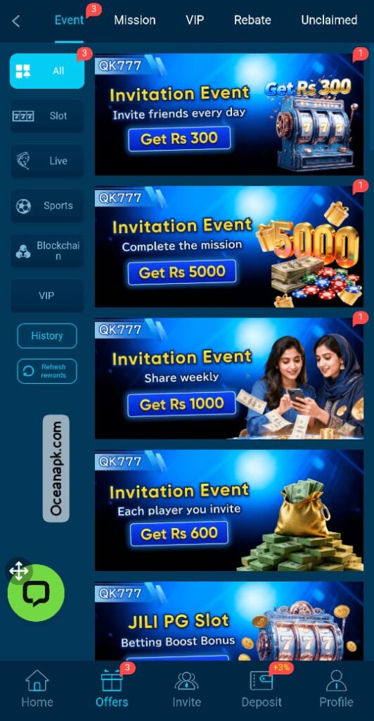 The QK777 Game is a mobile gaming platform that offers a wide variety of casino-style games combined with the potential for real-money rewards. Primarily popular in South Asia, particularly in Pakistan, the platform provides users with a mobile-friendly casino environment featuring slots, card games, mini-games, and table games. The application seeks to combine entertainment and earning opportunities, giving users the thrill of a casino along with rewards, bonuses, and the chance to withdraw winnings.